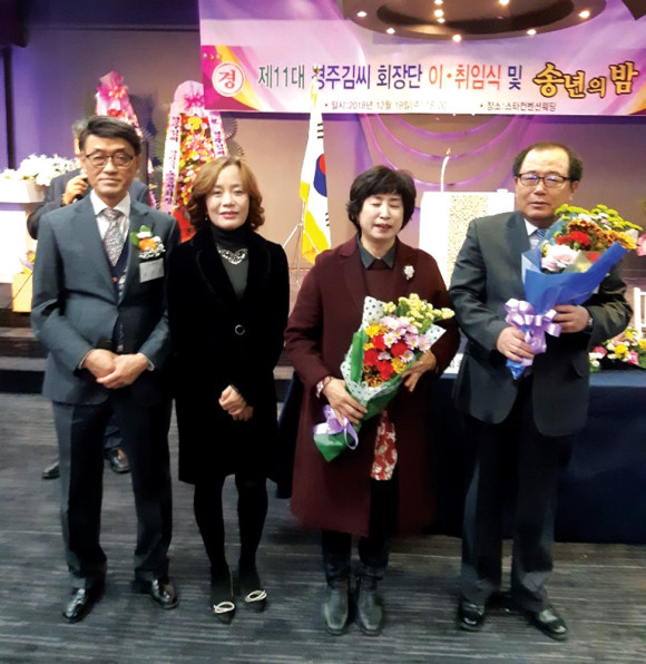 | | | ⓒ 영천시민뉴스 | | 경주김씨 청년회는 지난 19일 스타컨벤션웨딩에서 회장단 이취임식 및 송년의밤 행사를 개최했다. 이날 행사에서 경주김씨 청년회 11대 회장으로 김진식 씨(맨 좌측·부산식육점)가 취임했다.