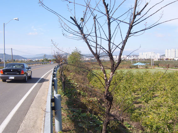 그린환경센터로 가는 동부동 진입로에 있는 목백일홍(배롱나무) 가로수들이 모두 고사 직전에 있다.