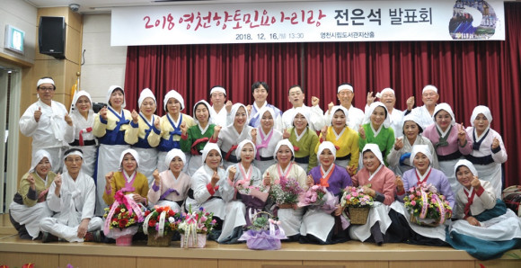 | | | ↑↑ 전은석 영천아리랑보존회장이 개인발표회를 열었다. | | ⓒ 영천시민뉴스 | | 2018 영천향토민요 아리랑, 전은석 발표회가 지난 16일 영천시립도서관 지산홀에서 개최됐다.