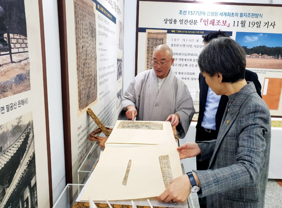 | | | ↑↑ 영천역사문화박물관 지봉스님이 지난 11월 진행된 국회전시회에서 문화재정 관계자들에게 조보에 대해 설명하고 있다. | | ⓒ 영천시민뉴스 | | 조선 1577년 세계최초의 활자조판방식 상업용 일간신문 인쇄조보가 경상북도 유형문화재 제521호에 이름을 올렸다. 지금까지는 1650년 독일에서 발행된 ‘아이코멘데 차이퉁’이 세계 최초의 일간 신문으로 알려졌는데 1577년 ‘민간조보’는 이보다 80년 앞선 것이다. 조보는 왕과 사대부의 전유물로 일반 백성은 접근할 수 없었다. 대신 선조 1577년 ‘민간조보’가 만들어져 일반 백성들이 구독한 것으로 알려지고 있는데, 조정의 인사발령부터 각종 사건사고 등의 내용이 담겨 있다. ‘조선왕조실록’에 보면 1577년 음력 11월 28일 선조가 우연히 ‘민간조보’를 발견하고 크게 분노해 발행 석 달 만에 폐간시키고 조보 발행인 30여 명에게 가혹한 형벌과 유배를 보냈다는 기록이 있다.