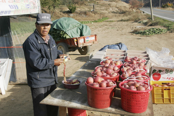 김진영 씨와 인터뷰를 뒤로한 채 35번 국도를 따라 한참을 가면서도 사과밭과 배추밭만이 눈에 들어왔다. 가끔 논이 있었지만 넓은 논농사지역은 보기가 힘들었다.