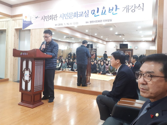 영천시는 지난 15일 시민회관 리허설 실에서 영천아리랑 민요반 개강식을 가졌다(사진).