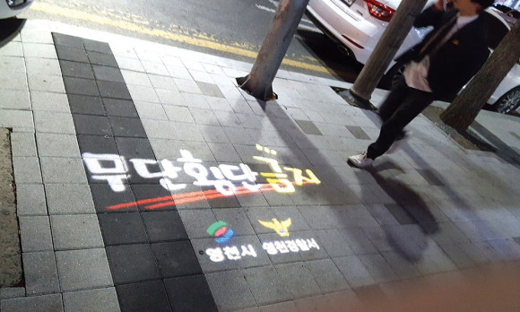 바닥조명, 인도위에 예쁜 글씨와 그림