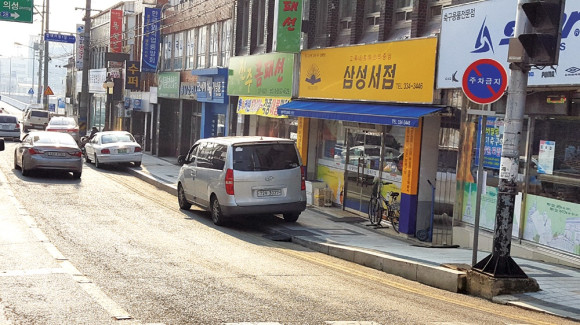 중앙사거리 도로변 주차하게 해 주세요