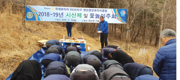 국제로타리 3630지구 영천중앙로타리클럽(회장 윤영목)은 지난 10일 오전 북안면 구룡산에서 김선태 시의원과 회원들이 참석한 가운데 시산제 및 윷놀이 주회를 가졌다.