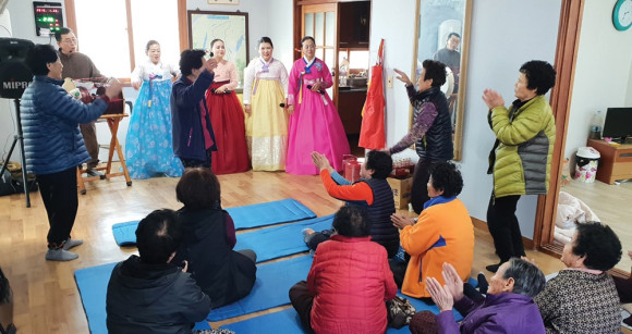 (사)영천아리랑연구보존회(회장 전은석)는 지난 1월 30일 화남면 대천1리 경로당을 찾아 어르신들에게 한바탕 신명나는 민요공연을 선보였다. 영천시 지원사업으로 실시하고 있는 경로당 순회공연은 올해 50여차례 진행할 예정이며 마을 곳곳을 찾아 우리지역의 고유한 문화브랜드인 영천아리랑을 소개했다.