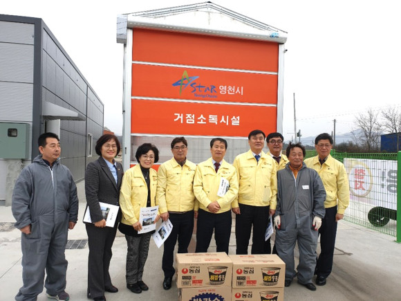 | | | ↑↑ 영천시의회 의원들이 소독현장을 방문했다. | | ⓒ 영천시민뉴스 | | 영천시의회(의장 박종운)는 지난 7일 구제역 거점소독시설 현장을 방문해 근무자들을 격려하고 위문품을 전달했다.