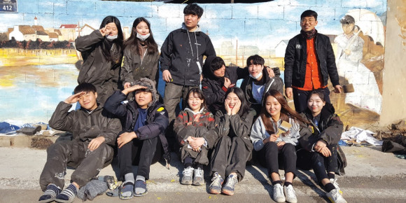 경북대학교 더함총동아리연합회(회장 설초록)와 미술학과(대표 전재민) 학생 40여명은 지난달 28일부터 3일간 화산면 가상리에 위치한 가래실문화마을(별별미술마을)에서 그림 봉사활동을 폈다. 학생들은 숙식을 하면서 큰 벽면 4개를 완성했다. 경대학생들은 3년째 이곳을 찾아 봉사하면서 12벽면을 완성했다.