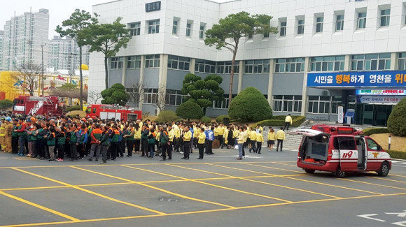 | | | ⓒ 영천시민뉴스 | | 3월 20일 제410차 민방위의 날을 맞아 영천시 전역에서 화재대피 민방위훈련이 시행됐다. 다중이용시설 시범훈련은 영천시청 주차장에서 경찰서 소방서 등 관계기관 합동으로 600여명이 참여하는 민관훈련으로 열렸다.