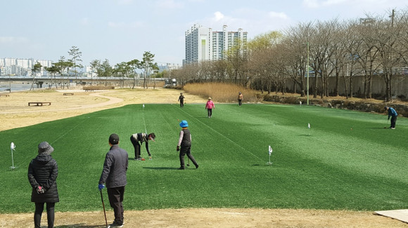 | | | ⓒ 영천시민뉴스 | | 그라운드골프 회원들이 강남 둔치(로터리회관옆)에서 골프를 치면서 건강을 다지고 있다. 회원들은 “회원들이 늘어나고 있어 골프장 확대를 희망하고 있는데, 행정에서 예산을 확보해 추진 중에 있는 것으로 알고 있다. 하루빨리 구장을 확대했으면 한다.”고 했다.