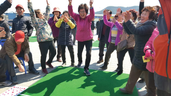 민족고유전통놀이 통해 주민간 소통하고 화합하는 매개체가 봄철 윷놀이다. 지난 3월 23일 청통면에서 열린 윷놀이 대회에서 주민들이 윷놀이를 하며 신바람나게 춤을 추고 있다.