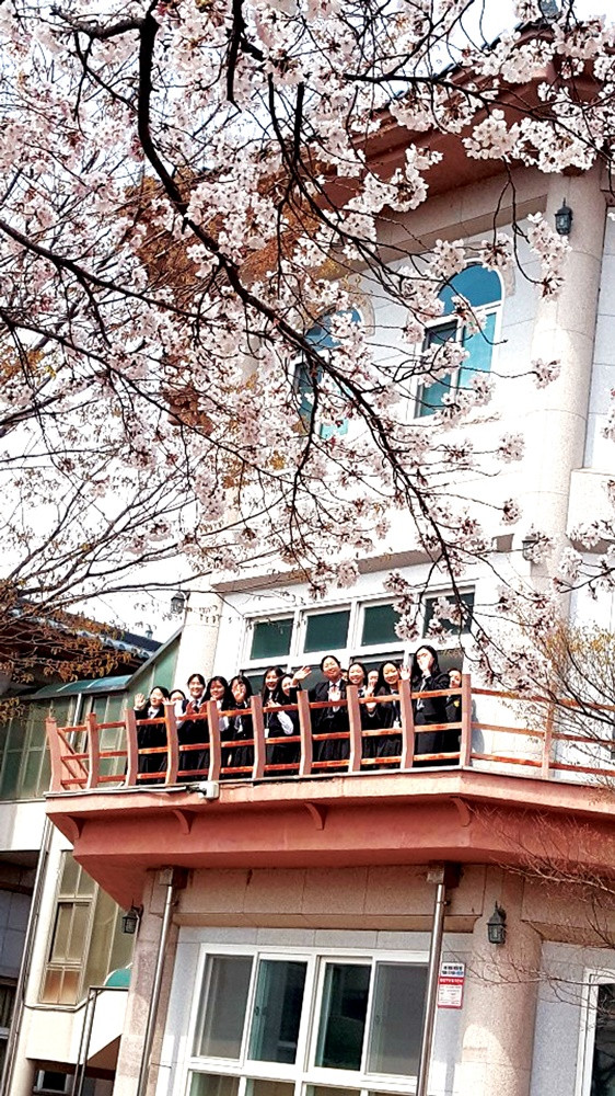 4월에 접어들면서 봄기운이 완연한 가운데 지역에서도 벚꽃을 비롯한 봄꽃들이 만개하고 있다. 사진은 지난 1일 성남여고 교정에서 재학생들이 벚꽃 콘테스트를 앞두고 기념촬영하는 모습이다.