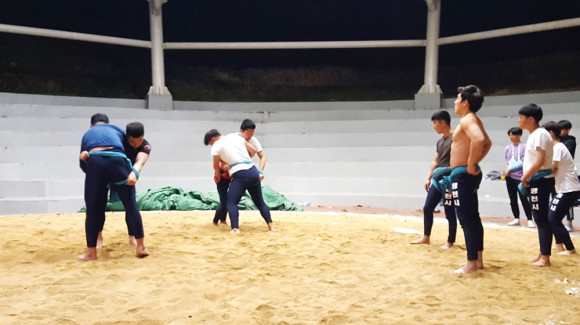 도체 씨름 출전 선수, 씨름 구장서 구슬땀