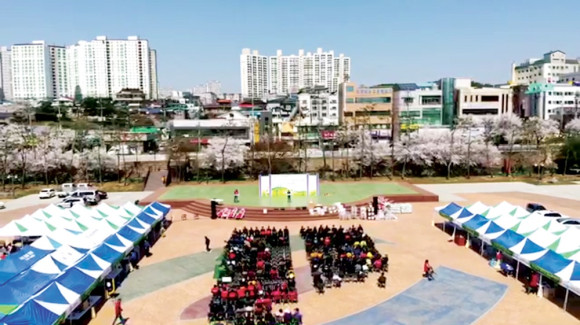 지난 3일 둔치에서 제31회 농업경영인영천시연합회 행사가 관내 각 기관단체장 및 농업관계자 회원 등이 참석한 가운데 열렸다. 식전 행사 시간을 활용해 드론으로 행사장 모습을 카메라에 담았는데, 시가지와 벚꽃 등이 어울려져 아름다운 모습을 연출하고 있다.