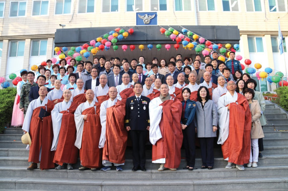 | | | ⓒ 영천시민뉴스 | | 영천경찰서(서장 김영환)는 지난 4월 30일 경찰서 현관 앞에서 불기 2563년 ‘부처님 오신 날’ 맞이 봉축탑 점등식을 개최했다. 이날 행사는 은해사 주지 돈관스님, 경승 및 신도와 경찰서 불자회원 등 100여명이 참석한 가운데 개최되었다.