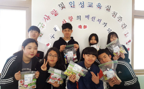 산동중학교(교장 최삼호)는 가정의 달을 맞아 지난 2일부터 15일까지 전교생을 대상으로 친구사랑실천, 부모님 사랑실천으로 감사 편지쓰기와 사제간 친목 도모를 주제로 ‘1차 인성실천주간’을 운영했다. 먼저, 친구사랑 실천으로 중간고사 기간동안 시험준비에 노력하는 교우간에 서로 응원하는 차원에서 ‘친구야, 함께 열공하자~ 파이팅’이라는 격려 메시지와 함께 초콜릿을 나누는 시간을 가졌다. 또, 어버이날을 맞아 사랑으로 키워주고 돌봐주는 부모님께 감사의 마음을 전할 수 있는 편지를 써서 전달하는 기회도 만들었다. 이은혜(1학년) 양은 “매년 돌아오는 어버이날이지만 중학생이 되어 쓰는 감사의 편지에는 마음다짐이 더 새로운 느낌이었어요.”라며 “형제가 많아 내 몫이 적다고 불평불만투성이였지만 여러명의 자식을 키우는 부모님은 쉽지 않을 거라는 생각을 하며 그동안의 불평이 죄송하고 많은 것이 감사하다는 걸 편지를 쓰면서 깨닫게 되었어요.”라 소감을 밝혔다.