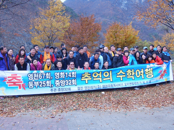 지난 9일 영천초등 67회(회장 정기영) 영화초등 14회(손영신) 동부초등 25회(이해동) 중앙초등 32회(황창달) 동기 60여명은 둔치에 집결해 버스 2대를 나눠 타고 충청북도 단양군에 위치한 구인사, 도담삼봉 등지를 다니며 초등학교 당시의 수학여행 추억을 떠올렸다.