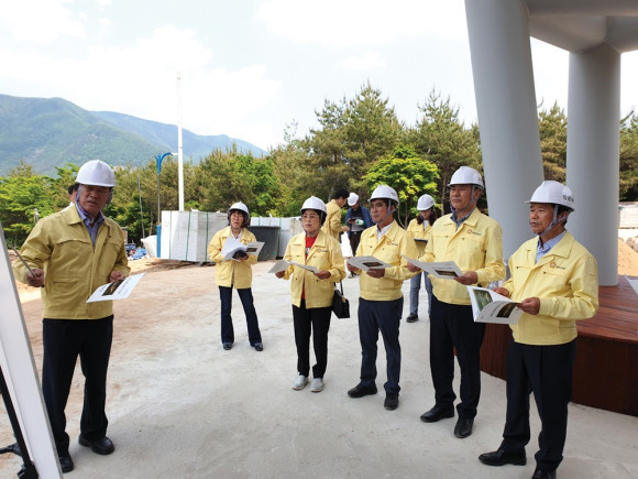 금호읍 황정리에 추진 중인 화랑설화마을 조성현장(힐링산업과)에서는 “잔디 등을 추가 식재하여 여름철 고온에 대비하고 하천변에 설치된 태양광 시설이 시야를 막고 있어 이동설치를 고려할 필요가 있다.”고 지적하고 “실내 공사현장에 유해가스가 발생하고 있어 작업 중 안전사고예방 대책을 강구하라”고 당부했다.
