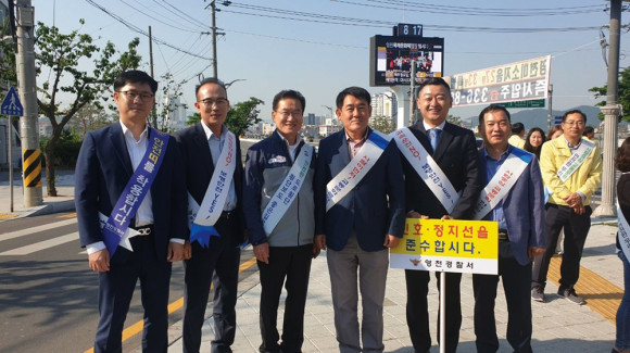 영천시는 지난 23일 관내 주요교차로(시청오거리 등 5개소)에서 영천시, 영천경찰서, 교육지원청 등 30개 기관·단체 합동으로 250여명이 참여하는 대규모 교통안전 캠페인을 펼쳤다.
