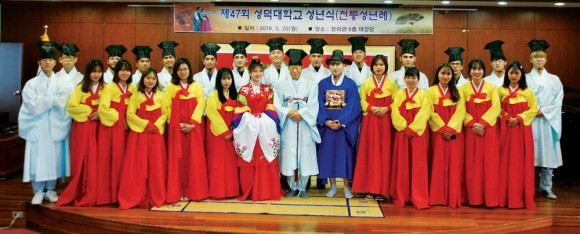제47회 성년의 날을 맞아 지난 5월 20일성덕대학교 재학생들이 전통 성년례를 가졌다. 신녕향교 주관으로 열린 이번 성년례에는 국내 재학생들과 베트남, 우즈베키스탄 어학연수생 중 성년이 되는 학생들도 함께 참여하여 한국의 전통문화를 체험하는 시간을 가졌다.