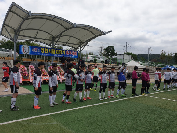 지난 9일과 16일 양일간 개최되는 제27회 영천시협회장기 축구대회가 지난 9일 영천강변공원 축구장에서 개막되어 열전이 벌어졌다. 예년보다 선선한 날씨가 선수들을 축복하는 이날 대회는 지역 축구동호인 17개팀 400여 명의 선수들이 출전해 양일에 걸쳐 승부를 가리게 된다.