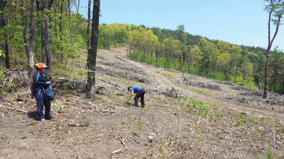 ↑↑ 소나무 재선충 예방을 위해 예방 벌목현장.