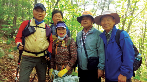 내려가는 탐사로에는 5월 산나물이 여기저기 널려있어 대원들이 산나물을 조금씩 모았다. 석한이 대원은 5월 산행을 대비해 나물 캐기 좋은 간단한 도구까지 준비하고 있었다.