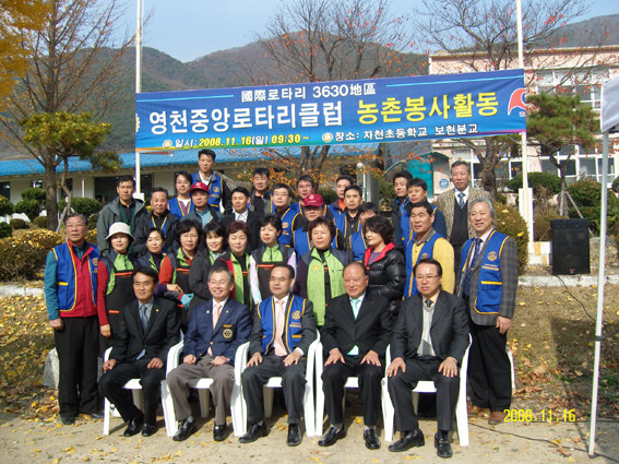 휴일에 영천에서도 가장 오지인 보현리를 찾은 국제로타리 3630지구 김원표 총재와 영천중앙로타리클럽 구본근 회장 및 50여명의 회원들은 봉사활동과 함께 이불 20채(시가 100만원 상당)를 불우한 이웃에게 전달했으며 의료반(김인환 내과, 고려수지침 영천시지회), 전기수리반(대왕전기), 민원상담반(건축, 부동산)을 운영하여 다양한 봉사활동과 무료급식 봉사(수선화 회원)로 지역 주민들에게 잔치를 베풀었다.