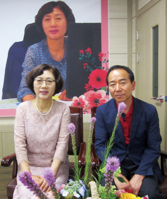 ↑↑ 김기숙 면장(좌)이 부군과 함께 기념촬영을 했다.