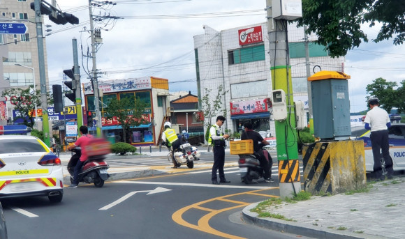 영천경찰서는 지난 7월 12일 점심시간을 전후해 오토바이 헬멧 미착용에 대한 단속을 대대적으로 실시했다. 이날 시청 오거리에서 헬멧 미착용 오토바이 운전자가 잇따라 적발됐다. 최근 출근길 음주단속 등 교통법규 위반에 대한 단속이 강화됨에 따라 교통질서 법규를 반드시 지키는 성숙된 시민의식이 필요하다.