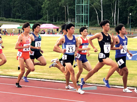 한국육상 최대의 기대주인 이재웅 선수(영동고 2년)가 28년만에 한국 고교 신기록을 세웠다. 사진은 지난 7월 13일 일본 시베쓰시 육상경기장에서 열린 3차 지토세대회 남자 1500m경기에서 역주하는 이재웅 선수(앞에서 두번째)의 모습. <사진제공 : 황준석 육상코치>