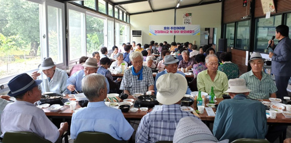 | | | ⓒ 영천시민뉴스 | | 임고면 효리의 어르신 100여명이 중복을 맞아 복달음으로 삼계탕과 수박을 먹으며 즐거 운시간을 보냈다. 이번 복달음은 오션힐스 영천CC에서 삼계탕을 제공하여 이뤄졌다. 이영수 효리이장은 “일상의 시름을 잊는 즐거운 화합의 장이 되어 고맙다.”고 전했다.