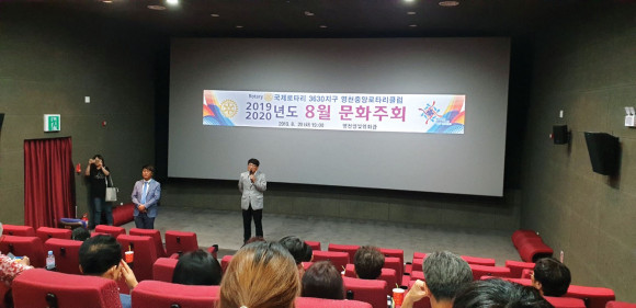영천중앙로타리클럽(회장 모석종)은 지난 8월 20일 오후 영천공설시장내 별빛영화관에서 회원 및 가족들이 참석한 가운데 8월 문화주회를 개최했다. 문화주회는 전통시장 활성화 차원에서 식사와 영화관람의 시간을 가졌다.