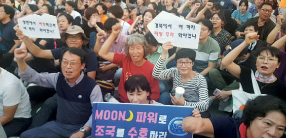 영천시민광장 회원들은 지난 9월 28일 서울 서초구 대검찰청 앞에서 열린 ‘검찰개혁을 요구하는 범국민 대규모집회’에 참석했다. 고유나 시민광장대표는 “무소불위의 검찰권력이 국민 무서운걸 알았으면 좋겠다. 10만 국민이 모였으면 한다는 SNS 게시글 때문에 집회에 동참했다.”고 전했다. <사진제공 : 영천시민 광장>
