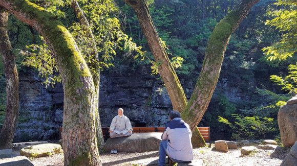 은해사 스님이 모델로 등장했다. 지난 10월 10일 은해사 본당앞 은해교에서 한 스님이 가을을 표현하는 차분한 자태를 만들고 사진작가는 열심히 셔터를 누르고 있는 모습이 카메라에 담겼다. 두 사람이 열정적으로 불심을 표현하는 모습 자체가 예술처럼 보인다.