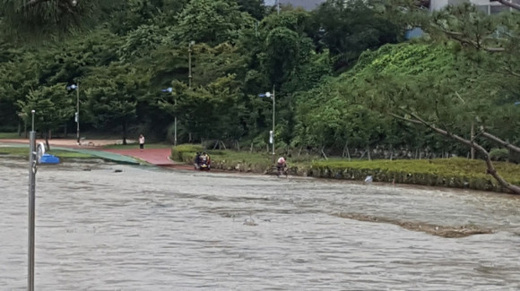 지난 10월 3일 오후 태풍으로 인해 금호강 물이 불어나 영화교 밑 둔치에도 물이 가득차 올라오고 있는데, 전동스쿠터 탄 장애인 2명과 자전거를 탄 시민이 몇 차례 물위를 지나려고 위험한 행동을 보였다. 아찔한 순간을 맞았으나 결국 다시 뒤로 돌아가는 현장이 취재 사진에 담겼다.