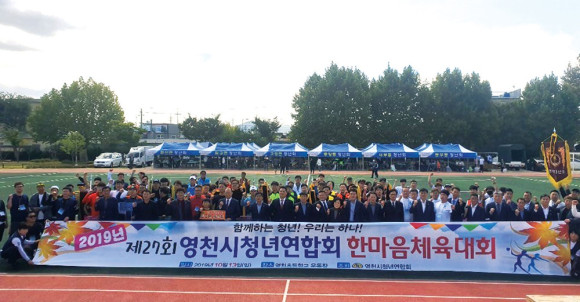 영천시청년연합회(회장 정용주)는 지난 10월 13일 영천초등 운동장에서 ‘함께하는 청년, 우리는 하나’라는 슬로건 아래 제27회 한마음 체육대회를 개최했다. 이날 체육대회에는 각 기관단체장들과 연합회원, 단위청년회원 및 가족들이 참석해 즐거운 시간을 보냈다.