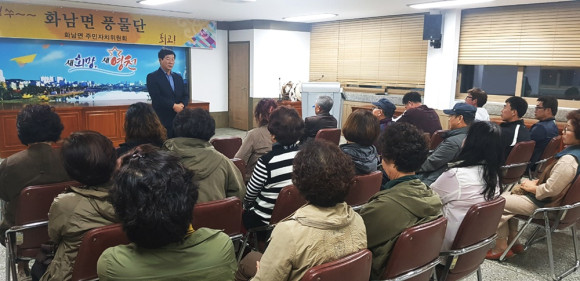화남면(면장 이병성)은 지난 10월 15일 화남면행정복지센터 회의실에서 ‘화남면 풍물단’을 창단했다. 그동안 각종 행사시 면 자체 풍물이 없어 아쉬워했던 터라 청년회, 생활개선회 등 각종 단체는 물론 관심 깊은 지역주민들의 적극적인 참여로 이날 창단과 첫 수업을 갖게 되었다.