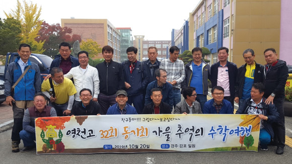 영천고 32기 동기회(회장 오정희, 85년 졸업)는 지난 20일 오전 모교 교정에 집결, 단풍으로 물든 교정을 둘러본 뒤 버스에 올라 불국사와 감포, 경주엑스포를 다니며 학창시절 수학여행을 떠올리고 동기들의 단합을 도모했다.