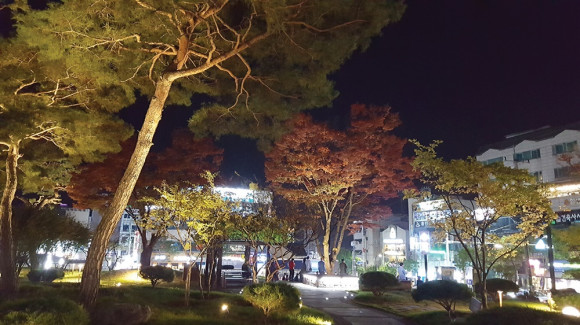 아름다운 가을밤 정취를 느끼고 싶다면 영천시청 소공원을 찾아가 보세요. 시청 소공원에는 소나무와 단풍나무 등이 가을을 대표하는 멋진 모습으로 시민들을 반기고 있다. 이날 가을밤 야경은 10월 마지막 주말 밤이라 더욱 아름답게 보였다.