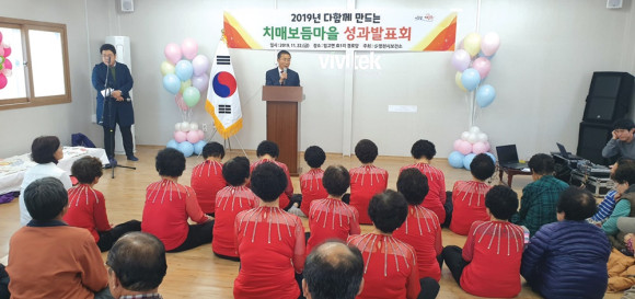 ‘2019 다함께 만드는 치매보듬마을 성과발표회’가 11월 22일 임고면 효1리 경로당에서 열렸다. 영천시보건소(소장 최수영) 주최로 올해 4월 임고면 효1리 회관에서 발대식을 가진 치매보듬마을 조성사업이 완료되어 그 성과를 발표하는 시간을 마련했다.