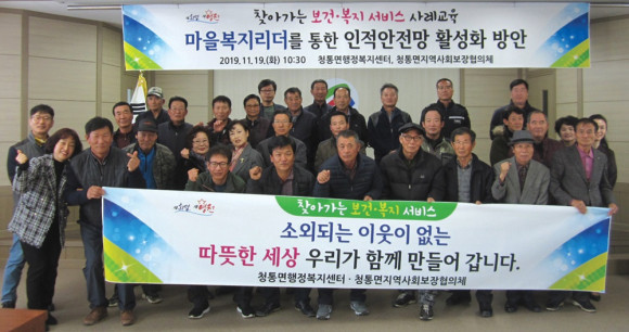 청통면 지역사회보장협의체는 그동안 서로가 한 마을에 살아오면서 이웃의 어려움을 알면서도 사각지대 발굴이 되지 않았으나 지금은 맞춤형복지담당과 직원들의 노력과 마을 리더들의 교육에 힘입어 청통면의 사각지대 발굴의 효과는 엄청 높아져 여러 가구에 도움을 준 좋은 성과를 올렸다.