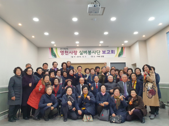 영천사랑실버봉사단(단장 이육만)은 12월 5일 시니어클럽 카페모람에서 봉사단원, (사)대한노인회영천시지회 직원 등 50여명이 참석한 가운데 연말 보고회를 가졌다.