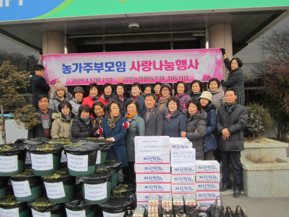 매년 실시하고 있는 행사로 농가주부모임 회원들이 김장김치용 재료인 생강과 청각 젓갈류를 농가에 판매하여 얻은 수익금과 회원들이 모금한 자금으로 어려운 이웃돕기를 하게 된 것이다.