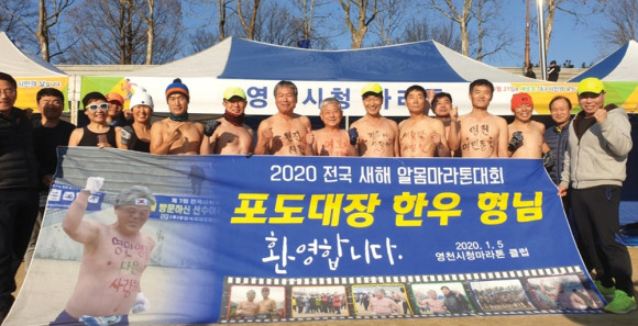 영천시청마라톤클럽(회장 김상명 안전재난담당) 회원 20여명은 1월 5일 대구 두류공원에서 열린 ‘2020전국새해알몸마라톤대회’에 참가 했다. 이날 대회에 출전한 회원들은 자신의 몸에 쓴 ‘새희망 새영천’ ‘영천 여민동락’ 등 다양한 문구를 통해 영천을 홍보했다.