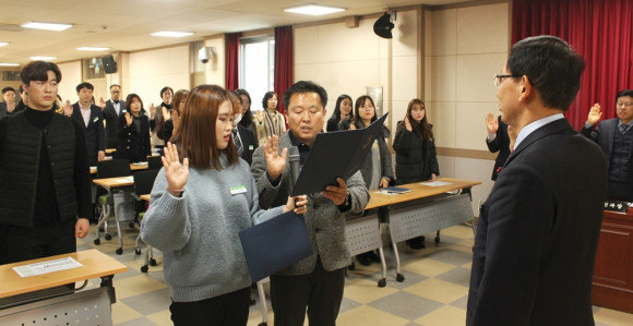 영천교육지원청(교육장 김우영)은 1월 2일 지원청 4층 대회의실에서 교육청 전 직원이 참여한 가운데 투명하고 깨끗한 공직문화 조성과 청렴한 영천교육 실현을 위해 ‘반부패·청렴 다짐식’을 개최했다(사진).