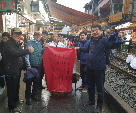 영천시당구연맹(연맹장 박찬경·좌측 첫번째) 소속의 당신클럽(회장 조한웅·좌측 세번째) 회원 10여명이 경자년 새해를 맞아 해외 동계전지훈련을 실시했다. 1월 9일부터 5일간의 일정으로 대만에서 진행된 전훈기간 동안 영천발전을 염원하는 풍등날리기 퍼포먼스를 진행했다.