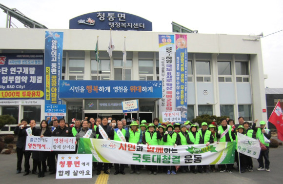 이날 정화활동에는 박태원 자연보호영천시협의회장이 참석하였으며 이장회의를 마친 이장들과 자연보호 회원들이 정화활동에 앞서 영천시의 최우선 과제인 11만 인구늘리기 운동에 발맞추어 살기좋은 영천 우리 청통면으로 주소 옮기기 캠페인을 펼쳤다.