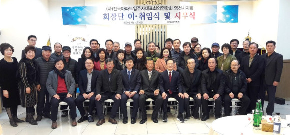 전국아파트입주자대표회의연합회 영천시지회 회장단 이취임식이 1월 10일 SD웨딩컨벤션에서 이만희 국회의원, 최기문 시장 등이 참석한 가운데 열렸다. 회장단 이취임식에는 현 문종윤 회장이 유임, 임기는 3년.