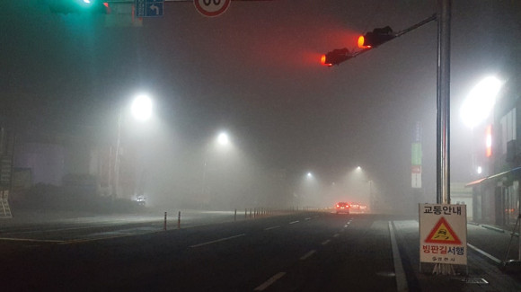 밤안개가 아주 심해 운전자들이 큰 불편을 겪었다. 1월 23일 밤에는 밤안개가 아주 심하게 나타나 가로등과 신호등 등 모든 것이 희미하게 보여, 거리를 다니는 차들이 운행에 큰 불편을 겪었다. 안개는 겨울 기온이 상승하고 비가 그치면 나타나는 현상이다.